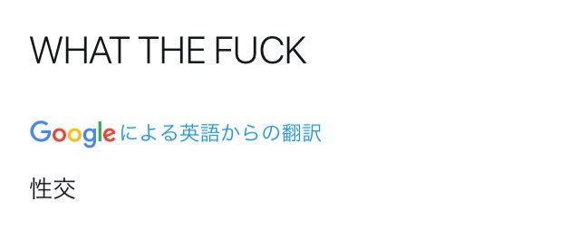 ぶらんらん What The Fuckを性交って訳しちゃうグーグル翻訳ちゃん可愛い エロい言葉を翻訳させられたと勝手に 勘違いして不機嫌になりながら吐き捨てるように小声で答えるも全然違くてムッツリスケベとポンコツを露呈してしまうaiじゃん